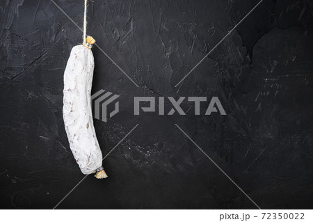 Spanish salchichon dry cured sausage on black