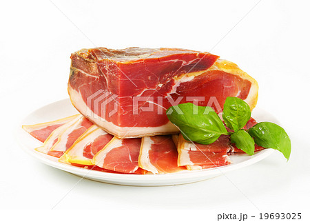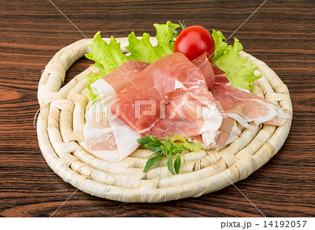 Italian prosciutto crudo or spanish jamon. Jerked meat serrano ham tasty