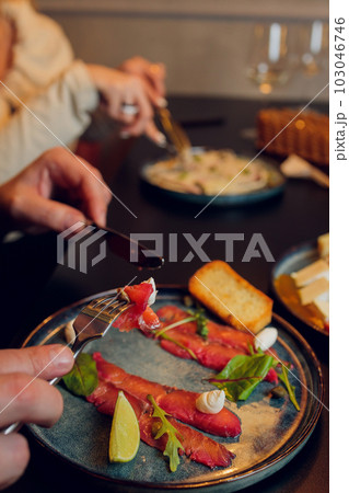 Having meal with salad at the restaurant