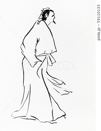 old chinese pundit hand drawn in sumi-e style