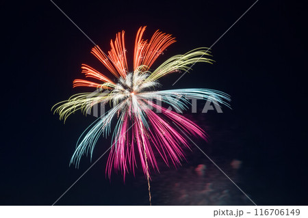 呉の夏祭り 海上花火大会 クローズアップ 七色