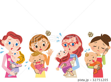 赤ちゃんを抱っこ紐で抱っこしたママの表情セット