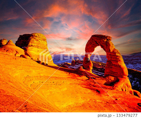 アーチーズ国立公園のデリケートアーチの夕景