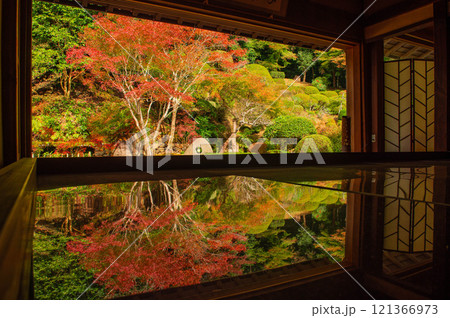 新緑の京都 本法寺 床に映る巴の庭