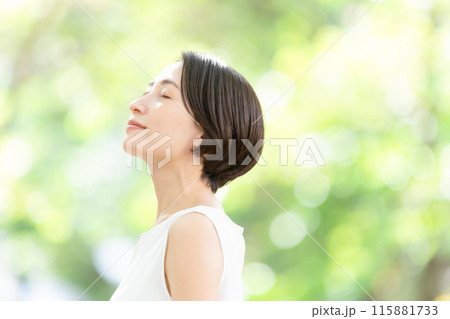 深呼吸をするミドル女性