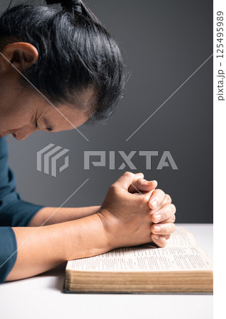 Woman with Bible in her hand, her faith unwavering as she prayed and worshiped God, finding strength and guidance in her Christian religion through the holy book. pray, woman, bible, faith, religion.