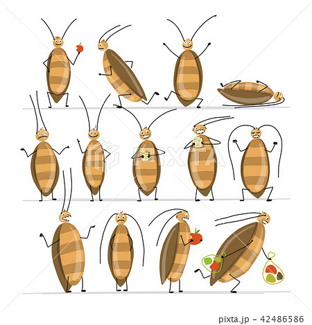 Cockroach funny cartoon set. Dirt cockroaches, cute home insect with various emotions. Wild pest or parasite, isolated comic classy vector characters