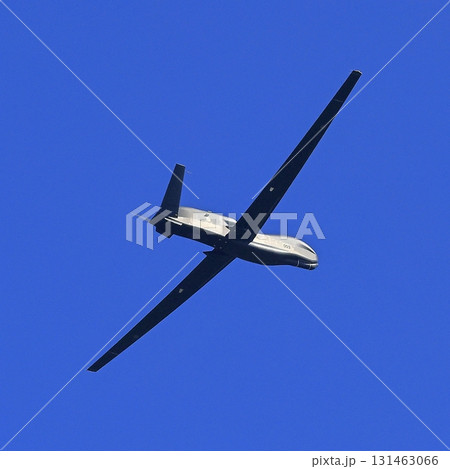 離陸する無人航空機 偵察機 グローバルホーク 自衛隊