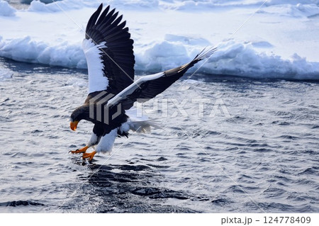 厳冬の海で魚を獲るオオワシ-Steller's sea eagle catching fish-