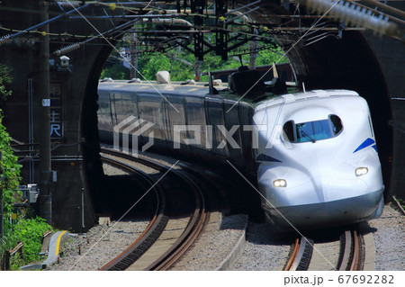 新幹線N700S J5編成と新緑 大津市石山付近にて