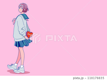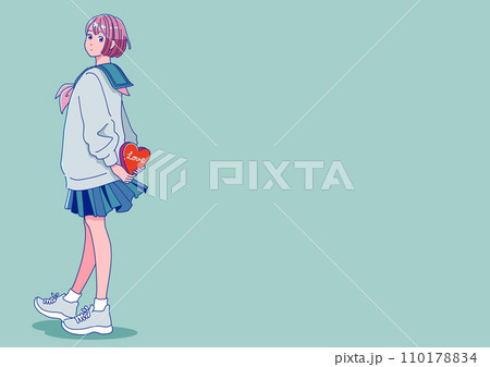 後ろ手にチョコレートを持つレトロポップな女子生徒