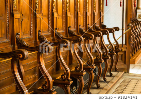 セルビア ノヴィ・サドの聖ジョージ大聖堂の聖堂内の椅子