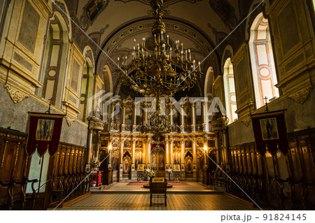 セルビア ノヴィ・サドの聖ジョージ大聖堂の聖堂内のシャンデリア