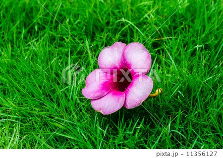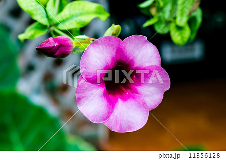 Close-up of the pink Bignonia magnifica in the garden with sunlight. Flower and plant concept.