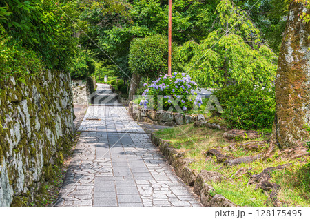 大津市坂本 石畳の道と新緑の木