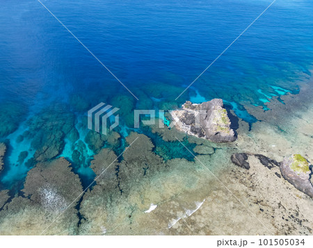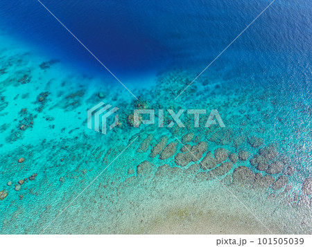 沖縄の美しい海 珊瑚礁の海に浮かぶ大量の透明なサンゴ礁