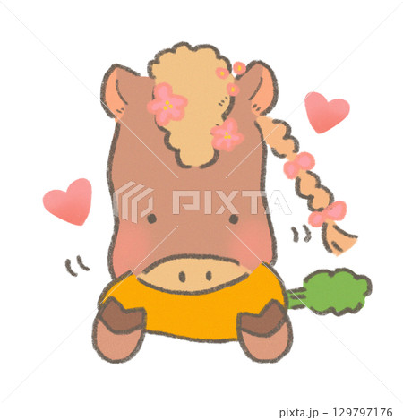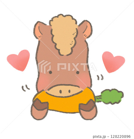 にんじんを食べているかわいい馬のデフォルメイラスト