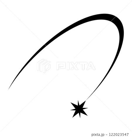 流れ星のイラスト 手描き風のシンプルなモノクロの線画のイラスト