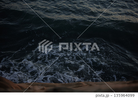 Aerial top view nature background of waves crashing in the ocean sea water, Drone view of sea waves in bird eye waves photo,Waves background