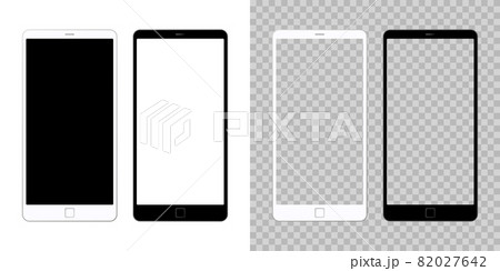 白と黒のスマートフォン、スマホ画面フレーム枠のベクターイラスト素材