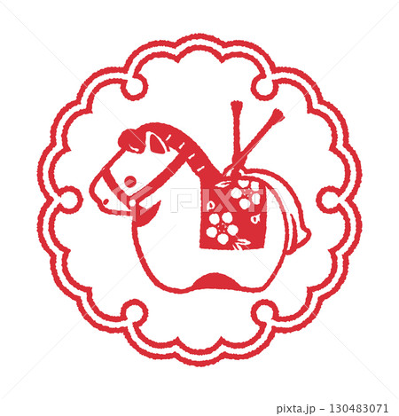 雪の輪文様に午(馬)の置き物のイラスト