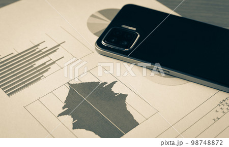スマホとグラフ 少子高齢化 人口減少 分析 DX化