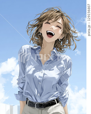 ドーナツと笑顔の女性|ポップでキュートなアニメ風ポートレート