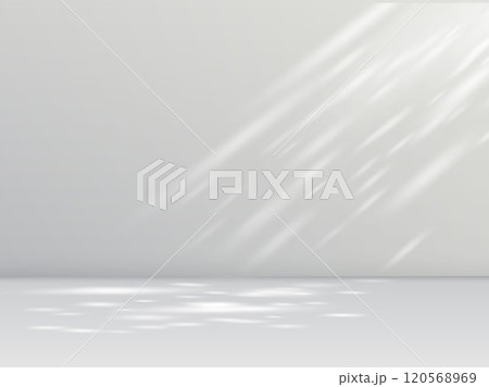 Shadow effect on white wall, sunbeams reflection, sun rays blur soft shade of natural lighting, leaves vector background