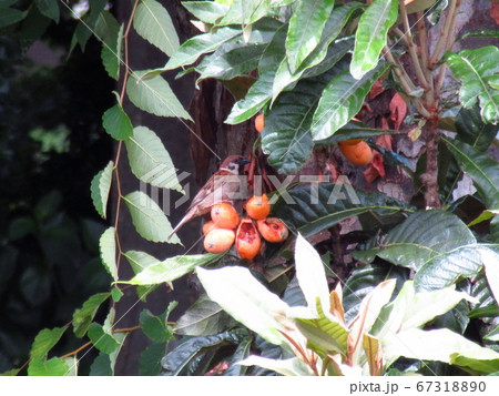 すずめと枇杷の実