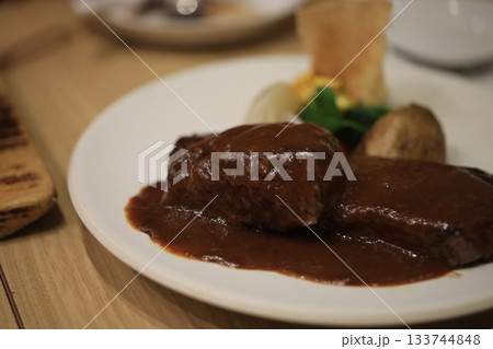つばめグリル ハンブルグステーキとビーフシチュー 接写 横位置