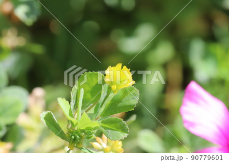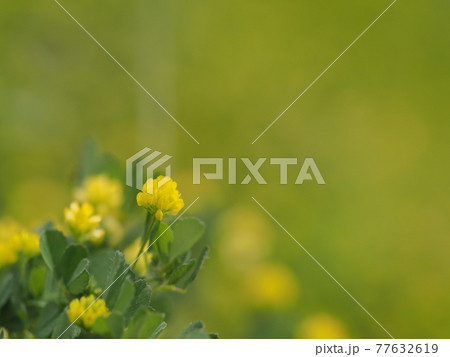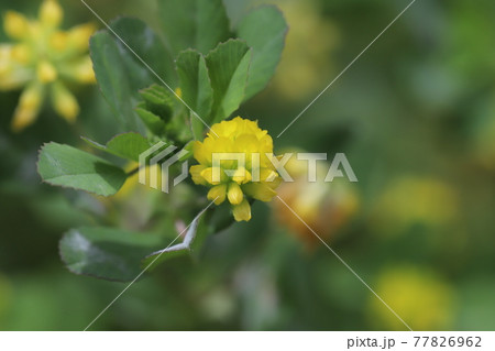 春の日本の野原に咲く黄色いコメツブツメクサの花