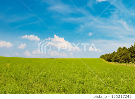 Fresh spring clover field and blue sky