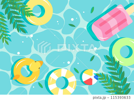 Summer pool swimming pool background illustration with pool and tube beach ball seen from above