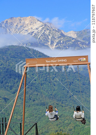 【秋素材】ハクバマウンテンハーバーの新名所・ヤッホースイング【長野県】