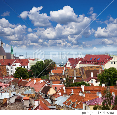 エストニアの首都タリン 世界遺産の旧市街 聖オレフ教会から望む