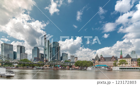 Hyperlapse of the historical Eiserner Steg or Iron Bridge over the Main River in Frankfurt, Germany