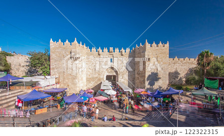 Entrance to Damascus Gate or Shechem Gate timelapse hyperlapse, one of the gates to the Old City of Jerusalem, Israel