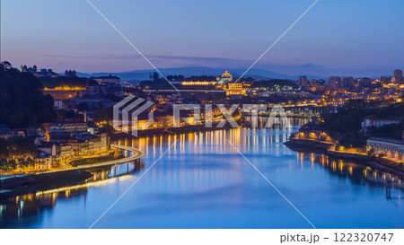 Day to night view of the historic city of Porto, Portugal timelapse with the Dom Luiz bridge