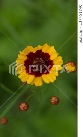 Coreopsis, Coreopsis DAYBREAK or Coreopsis grandiflora VANILLA DAYBREAK or yellow and red flowe