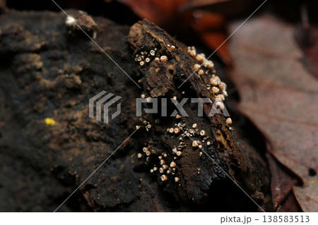 朽ち木に生えた小さいキノコ