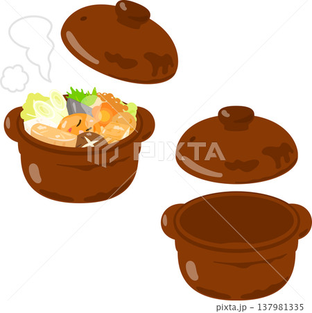 鍋料理が入った小型の土鍋と空っぽの土鍋