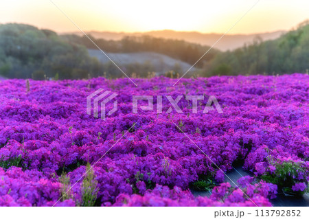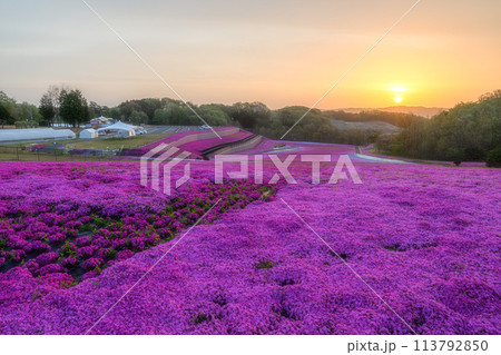 市貝町芝ざくら公園 満開の芝桜咲き誇る朝