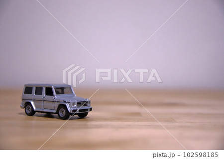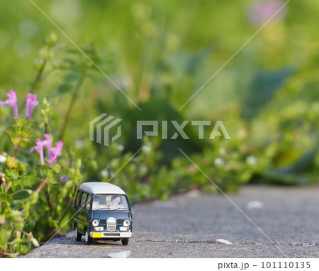 ミニカーのある風景 背景が緑のマーチ