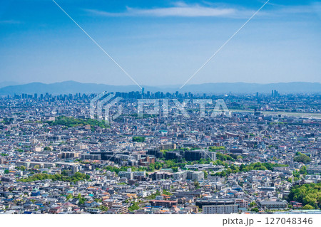 千里タワーを含む大阪北摂の俯瞰風景【大阪風景】