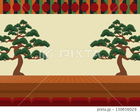 歌舞伎の幕と反射している舞台の壁紙