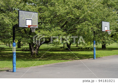 公園の風景 無人のバスケットコート 宮城県川崎町