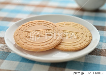 バニラ アイスクリーム ウエハース添え テーブル