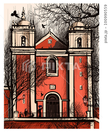 Original and Colorful representation of Church Santos-O-Velho, in Lisbon, Portugal