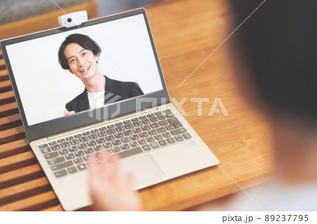 若い男性とビデオ通話をしているPCの画面