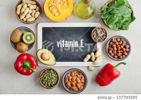 Healthy foods containing vitamin E (Tocopherolum).